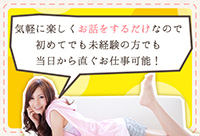 | お話が好きな私には凄く魅力的なお仕事でしたので早速登録してその日から働きました。 主婦の井戸端会議がお金になる感じで凄く楽しくていつもお話しをしています。 会員の方もお話がいつも面白いねと言って頂けます。 最近では私を指名してくれる会員様も増えており本当にありがたく思っております。 これからも頑張りますので応援を宜しくお願いします。 |